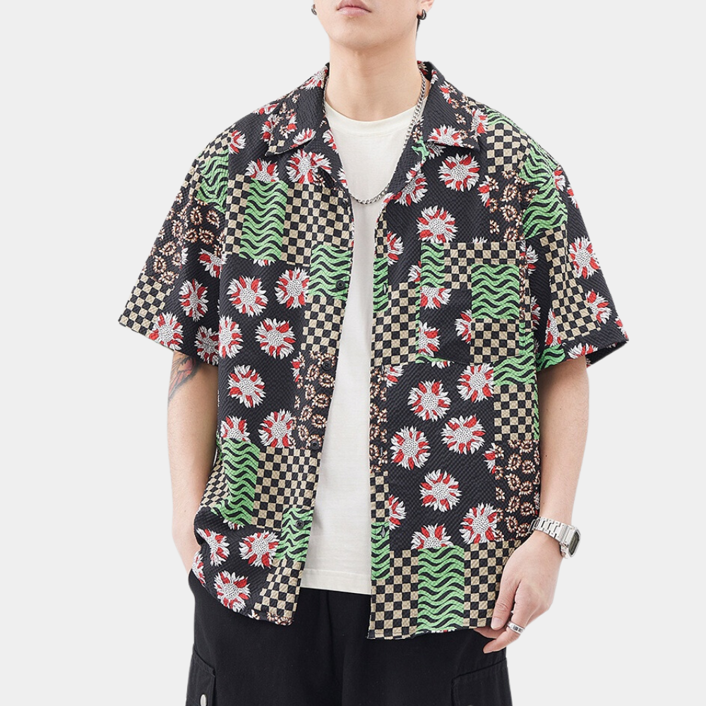 Sacha | Chemise Hawaïenne à Motifs Floraux et Géométriques